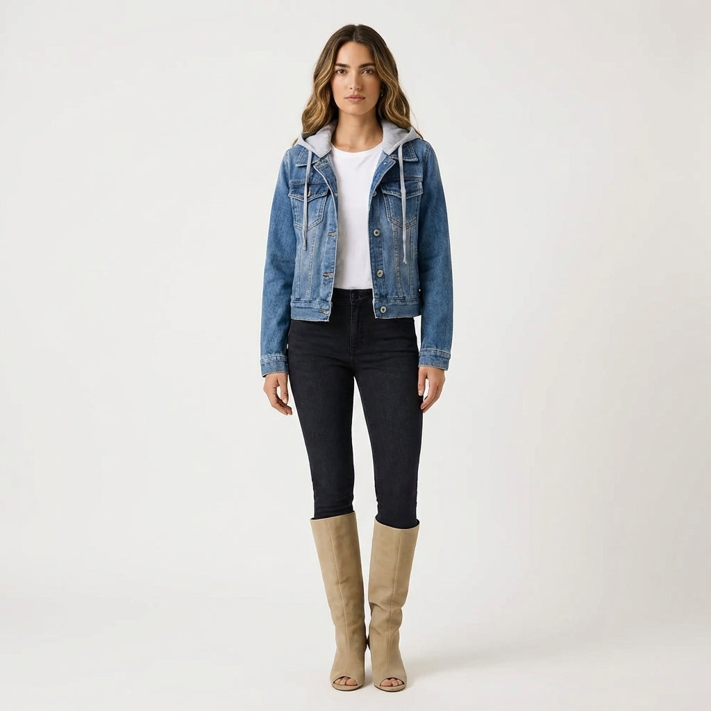 Adah - Lange Jeansjacke mit abnehmbarer Kapuze