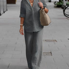 Beth - Damen-Sommer-Leinenset mit Taschen und kurzen Ärmeln