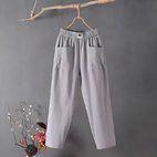 These comfortable Klaire women's trousers combine comfort, style, and practical use. Made from a soft cotton-linen blend, they are breathable and ideal for warm days or as a cover-up in cooler weather. The elastic waistband offers a pleasant and flexible fit, while the straight cut highlights the figure. They can be versatilely paired with casual tops or elegant blouses, perfect for everyday wear or relaxed outings. A must-have for women who want comfort, style, and simplicity in one pair of trousers.