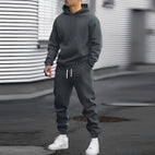 Das Aamon-Set für Herren besteht aus einem gemütlichen Kapuzenpullover und einer passenden Jogginghose, die für sportliche Aktivitäten und entspannte Ausflüge entwickelt wurden. Der weiche und atmungsaktive Stoff sorgt den ganzen Tag für Bequemlichkeit, hält warm und ermöglicht uneingeschränkte Bewegungsfreiheit. Das moderne Design garantiert Ihnen einen schmeichelhaften Look, egal ob Sie Besorgungen erledigen oder ins Fitnessstudio gehen. Mit seinen funktionalen Taschen und dem stilvollen Design ist es sowohl praktisch als auch modisch. Ein Muss für Männer, die Wert auf Komfort, Stil und Vielseitigkeit legen.