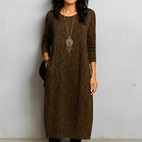 Bleiben Sie in dieser Saison warm und modisch mit diesem Abdelaine Damen-Midikleid mit langen Ärmeln, das Komfort und Stil vereint. Dank seiner schmeichelhaften Midilänge und dem weichen, warmen Material ist es ideal für entspannte Ausflüge, die Arbeit oder Feiertagsfeiern. Die nützlichen Seitentaschen fügen eine praktische Note hinzu, ohne die Eleganz zu mindern. Sein vielseitiges Design kann leicht mit Stiefeln, Flats oder Absätzen für einen vollständigen Winterlook kombiniert werden. Bequem, stilvoll und praktisch, ist dieses Kleid ein Muss in Ihrer saisonalen Garderobe.