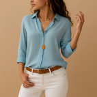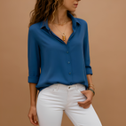 Die Akera Damenbluse mit V-Ausschnitt bietet eine ideale Mischung aus Stil und Komfort. Dank der langen Ärmel und des vorteilhaften Schnitts ist sie perfekt für Freizeitaktivitäten oder im Büro. Der weiche und atmungsaktive Stoff sorgt den ganzen Tag für Wohlbefinden und gibt Ihnen ein gepflegtes Erscheinungsbild. Kombinieren Sie sie mühelos mit Jeans, Rock oder Hose – eine vielseitige Ergänzung für Ihre Garderobe. Verleihen Sie Ihren täglichen Outfits mit diesem stilvollen und zeitlosen Stück neuen Schwung.