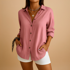 Eine klassische Baumwollbluse, die Komfort, Schlichtheit und Stil im Alltag vereint.