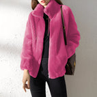 Alisson kombiniert Wärme, Komfort und Stil: der ideale Kunstpelzmantel für kalte Tage.
