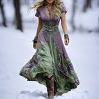 Unterstreichen Sie Ihren Stil mit diesem herrlichen langen Blumenkleid für Damen von Almaris, das Eleganz mit Komfort verbindet. Aus einem leichten, atmungsaktiven Stoff hergestellt, fällt es elegant, um jede Figur zu betonen. Der lebendige Blumenaufdruck fügt eine feminine Note hinzu, während die Länge und das weiche Material es ideal für Tagesausflüge, Abendveranstaltungen oder besondere Anlässe machen. Einfach kombinierbar mit Sandalen, High Heels oder einer leichten Jacke, ist dieses Kleid ein vielseitiges Stück für jede Garderobe. Ein Muss für Damen, die Stil lieben, ohne auf Komfort zu verzichten.