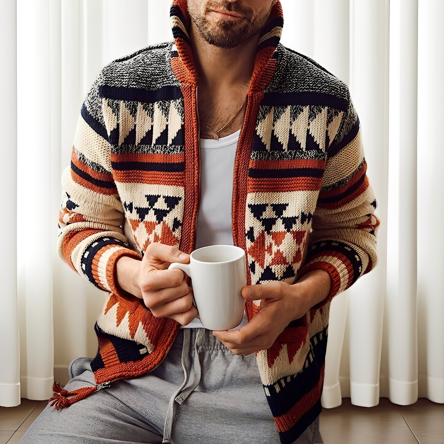 Der Alvin Cardigan besticht durch erstklassige Materialien und einen modischen Reverskragen, der jedem Outfit eine schicke Note verleiht. Das weiche Strickmaterial sorgt für Wärme und angenehmes Tragen, während das elegante Jacquardmuster einen modernen und stilvollen Look schafft. Perfekt für das Büro, die Freizeit oder entspannte Wochenenden, an denen Sie bequem und stilvoll sein möchten. Ein vielseitiger Cardigan für zahlreiche Anlässe.