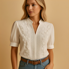 Diese elegante weiße Andie-Bluse ist für Frauen gedacht, die sowohl Stil als auch Bequemlichkeit schätzen. Ideal für die Arbeit, entspannte Ausflüge oder spezielle Anlässe, bietet sie einen schmeichelhaften Schnitt, der allen Figuren schmeichelt. Aus einem weichen, atmungsaktiven Stoff gefertigt, gewährleistet sie ganztägigen Komfort, ohne an Eleganz zu verlieren. Ihr vielseitiges Design passt gut zu Röcken, Hosen oder Jeans, was sie zu einem unverzichtbaren Teil Ihrer Garderobe macht. Verleihen Sie Ihrem Outfit mühelos mit dieser zeitlosen Bluse.