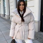 - Eleganter hoher Kragen und Gürtel: sorgen für einen modernen und femininen Stil.