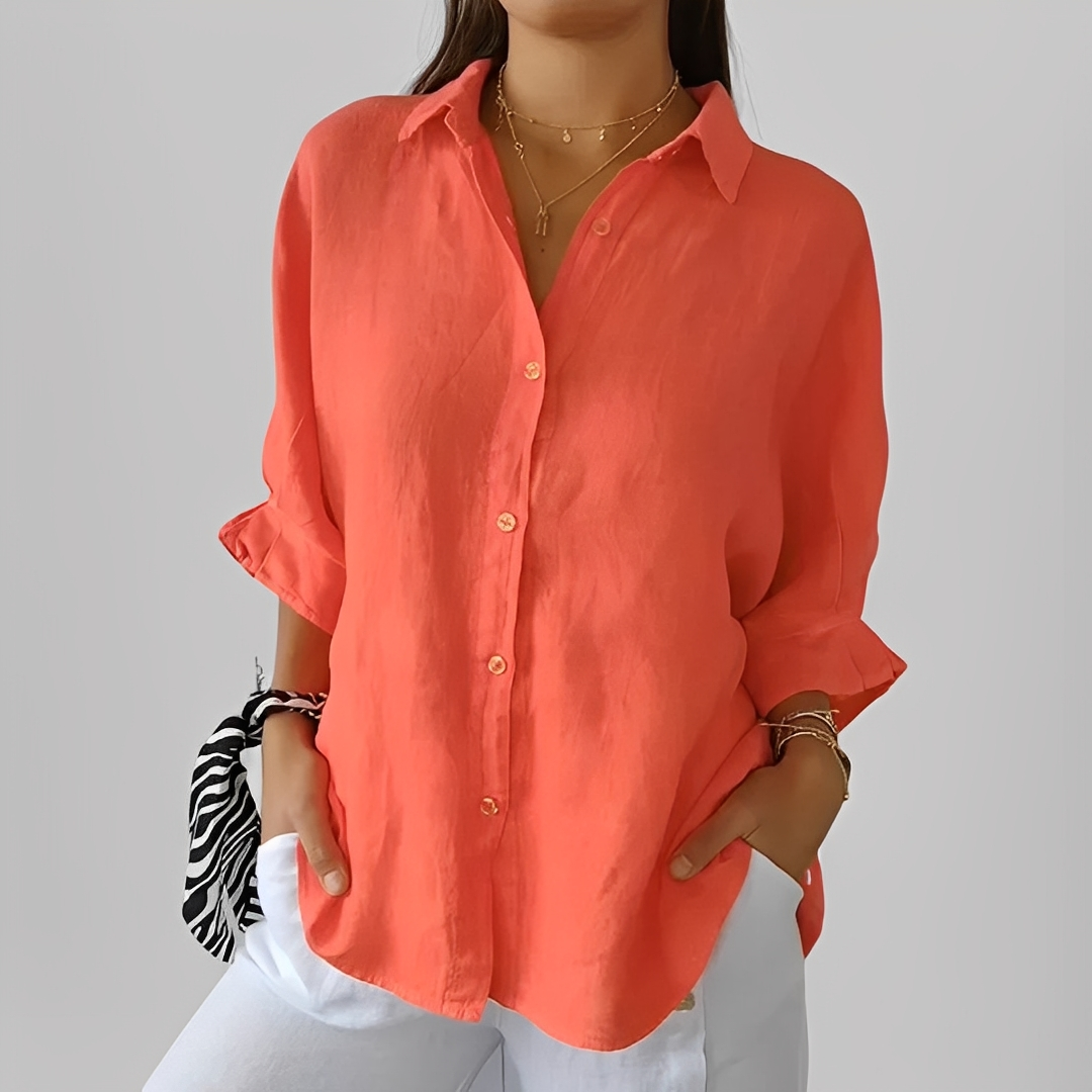 Diese stilvolle Antoinete-Bluse ist darauf ausgelegt, Komfort mit Stil zu verbinden. Ideal für die Arbeit, entspannte Ausflüge oder besondere Gelegenheiten. Der weiche, atmungsaktive Stoff sorgt für einen lockeren Schnitt, der alle Figuren unterstreicht. Das knöpfbare Design bietet eine zeitlose und elegante Ausstrahlung. Leicht zu kombinieren und zu tragen, passt sie hervorragend zu Jeans, Röcken oder schmalen Hosen. In diversen Farben und Größen verfügbar, passend für jede Gelegenheit.