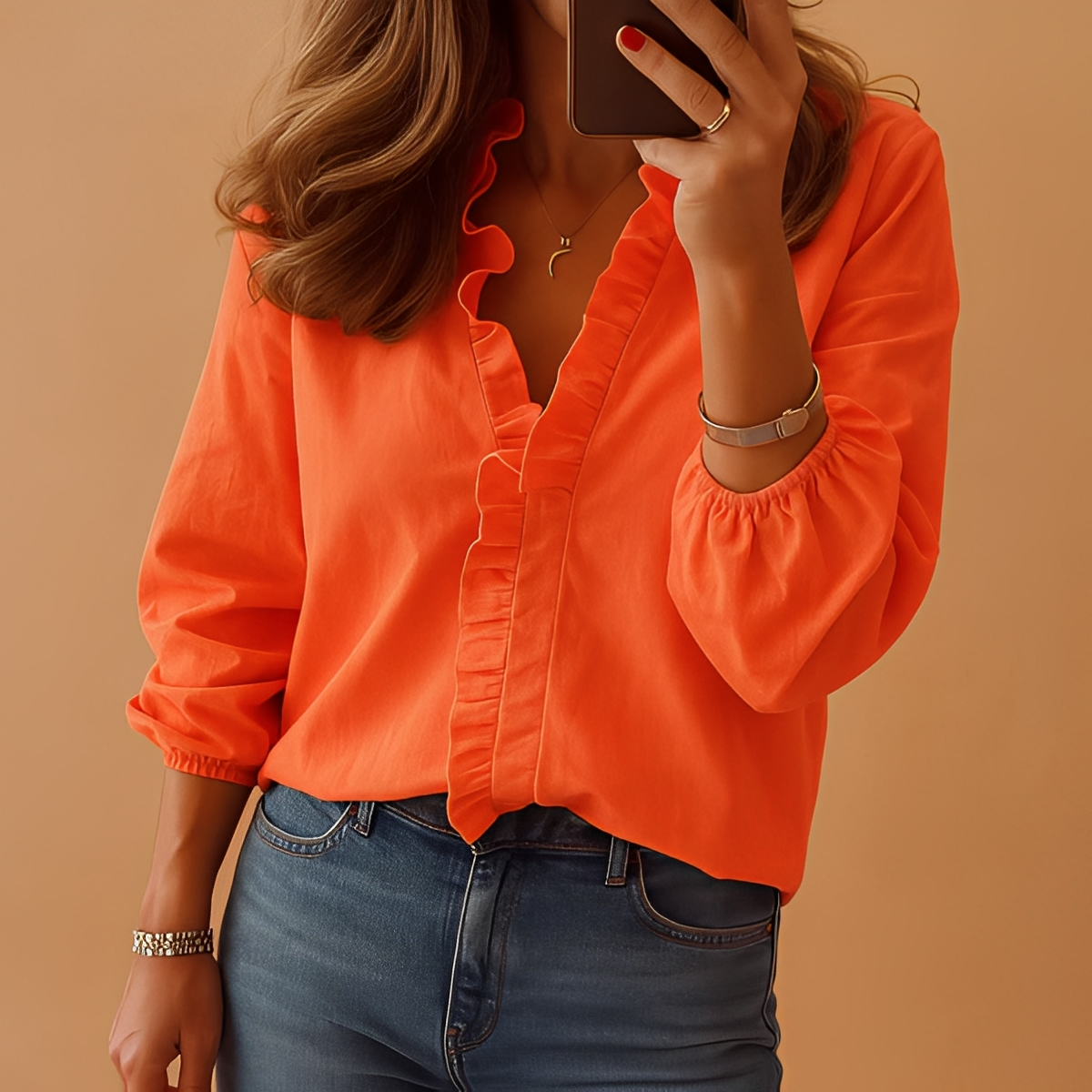 Frischen Sie Ihre Garderobe auf mit dieser stilvollen Aubbrey Langarmbluse, die entwickelt wurde, um Alltagseleganz und Komfort zu bieten. Der weiche, leichte Stoff fällt anmutig und schmeichelt Ihrer Figur. Feine Rüschen und ein femininer Schnitt verleihen jedem Outfit einen Hauch von Klasse, egal ob für das Büro, ein Abendessen oder besondere Anlässe. Leicht zu kombinieren mit Rock, Hose oder Jeans, ermöglicht diese Bluse viele Styling-Varianten. Bequem, schick und elegant - ein unverzichtbares Teil für jede Frau.