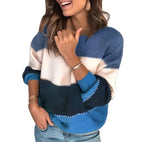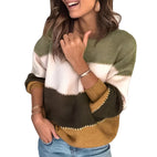 Der ‚Aubrie‘-Pullover mit modischem Color-Block-Stil bietet höchsten Komfort. Er ist aus einem weichen, warmen Material gefertigt, das bei kaltem Wetter angenehm ist. Der lockere Schnitt ermöglicht Bewegungsfreiheit und einen lässigen Look, der sich hervorragend mit Jeans, Röcken oder Leggings kombinieren lässt. Ideal für Spaziergänge, Freizeitaktivitäten oder entspannte Alltagsoutfits.
