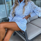 Damen-Spitzen-Set – Langarmbluse und hoch taillierte Shorts. Ein elegantes und leichtes Set, das Raffinesse und Komfort vereint, ideal für warme Tage und besondere Anlässe.