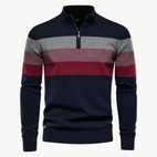 Der Aurullo Pullover mit Viertel-Zipper hat ein stilvolles Streifendesign und besteht aus einem hochwertigen Baumwollmix. Dieser superweiche Pullover fühlt sich angenehm an und bietet erstklassige Wärme. Der elegante Zipper und der taillierte Schnitt machen diesen Pullover zu einem vielseitigen Must-have, ideal für jede Gelegenheit.