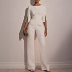 Verleihen Sie Ihrem Stil mit unserem Carolane Chic Jumpsuit einen besonderen Touch. Ausgestellte Ärmel verbinden Raffinesse mit Wohlgefühl. Die eleganten ausgestellten Ärmel sind mit dezenten Perlen verziert und verleihen eine luxuriöse Note, ohne aufdringlich zu sein. Der weiche, erstklassige Stoff schmiegt sich an Ihre Figur und erlaubt Bewegungsfreiheit. Sein klassischer Schnitt macht ihn geeignet für unterschiedliche Anlässe, von offiziellen Abendessen bis hin zu lässigen Treffen. Mit einem Design, das moderne Mode und zeitlose Eleganz kombiniert, ist dieses Kleidungsstück ein unverzichtbares Element in jeder Garderobe, um stilvoll und selbstbewusst aufzutreten.