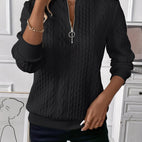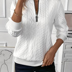 Der 'Carolyn' Pullover verbindet zeitloses Aussehen mit praktischer Nutzung. Der praktische Reißverschluss erleichtert das Anziehen und verleiht dem Pullover einen zeitgemäßen Stil. Hergestellt aus einem weichen Stoff, bietet er hohen Komfort und passt gut zu Jeans, Röcken oder Hosen – ideal für Alltag und Freizeit.