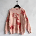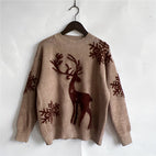 Dieser Pullover bringt winterliche Freude in Ihre Garderobe. Das weiche Material sorgt für angenehmen Tragekomfort, während das fröhliche Rentiermotiv eine festliche Atmosphäre schafft. Der lässige Schnitt bietet Bewegungsfreiheit und macht den Pullover zur perfekten Wahl für entspannte Wintertage, egal ob drinnen oder draußen. Ideal für stilbewusste Frauen, die festliche Mode schätzen.