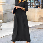 Genießen Sie Stil und Bequemlichkeit mit unserem gemütlichen, weit geschnittenen Christèle-Kleid, das den ganzen Tag über bequem bleibt. Hergestellt aus einem weichen, luftdurchlässigen Stoff, bietet es auch an heißen Tagen Frische und Wohlbefinden. Der großzügige, fließende Schnitt ermöglicht optimale Bewegungsfreiheit und schmeichelt jeder Silhouette. Dieses lange Kleid vereint auf entspannte Weise Komfort und Stil, ideal für zwanglose Anlässe und lässige Wochenenden. Ein Muss für Frauen, die einen legeren und stilvollen Look bevorzugen.