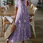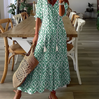 - Fließende Boho-Silhouette: Der fließende Schnitt und der V-Ausschnitt betonen sanft Ihre natürliche Figur, ohne einzuengen.
