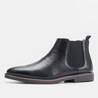 Diese klassischen Chelsea-Stiefel vereinen ein prägnantes Retro-Design mit moderner Alltagstauglichkeit. Die klare Form passt zu Jeans und eleganterer Kleidung. Seitliche Stretch-Einsätze ermöglichen schnelles An- und Ausziehen. Die robuste Verarbeitung garantiert sicheren Halt bei jedem Schritt. Ideal für Männer, die Stil und Funktion schätzen.