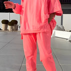 Das Eleanore-Set umfasst ein weit geschnittenes Oberteil und eine dazu passende Hose, die für einen entspannten und stilvollen Auftritt sorgt. Hergestellt aus weichem, hochwertigem Material, bietet es den ganzen Tag über Komfort. Das Set kann separat oder zusammen getragen werden und ist perfekt für Alltag, Freizeit oder informelle Gelegenheiten. Ideal für Damen, die Stil mit Bequemlichkeit verbinden möchten.