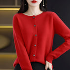 Entdecken Sie unseren stilvollen Haydée-Cardigan mit Knöpfen, ein vielseitiges Must-have, das Stil und gemütlichen Komfort kombiniert. Aus weichem, hochwertigem Material gefertigt, liegt er angenehm auf der Haut und verleiht jedem Outfit einen eleganten Touch. Sein klassischer Stil eignet sich perfekt zum Überwerfen über Kleider, Blusen oder lockere Shirts, während die dezenten Knöpfe seinen edlen Stil betonen. Leicht und dennoch warm genug, ist dieser Cardigan ideal sowohl für Arbeitstage als auch für entspannte Wochenenden.