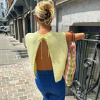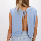 Stricktop für Damen – Ärmellos – Offener Rücken – Knotenverschluss – Bequemer Schnitt