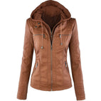 Janene - Bequeme, wetterfeste Lederjacke mit Kapuze für Damen