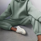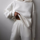 Das Jasmine-Set enthält einen locker geschnittenen Kapuzenpullover und passende Jogginghosen, die Komfort und Bewegungsfreiheit bieten. Angenehme Materialien sorgen für ein angenehmes Tragegefühl, während das elegante Design ein vielseitiges Freizeit-Outfit ermöglicht. Ideal für Homeoffice, Spaziergänge oder entspannte Tage draußen.