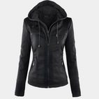 Jaylene - Moderne wasserdichte Damen-Lederjacke mit Kapuze