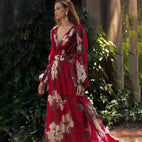 Karine - Stilvolles langes Damenkleid mit V-Ausschnitt