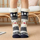 Die Kassia-Socken sind aus einem weichen, dichten Material gemacht, das Ihre Füße an kalten Wintertagen angenehm warm hält. Die liebevoll gestalteten Weihnachtsmuster schaffen sofort festliche Stimmung. Die bequeme Passform sorgt für Komfort, und die rutschfeste Sohle gibt sicheren Halt. Perfekt zum Entspannen, als Weihnachtsgeschenk oder für gemütliche Momente auf dem Sofa.
