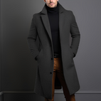 - Klassisches Design — Mit seinem markanten Revers und der langen Form sorgt er bei jedem Anlass für einen eleganten Auftritt.