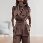 Geben Sie Ihrem Stil einen zeitgemäßen Touch mit diesem schicken ärmellosen Einteiler. Der hohe Schnitt mit Gürtel hebt Ihre Silhouette hervor und bietet sowohl entspannte Eleganz für jeden Anlass.