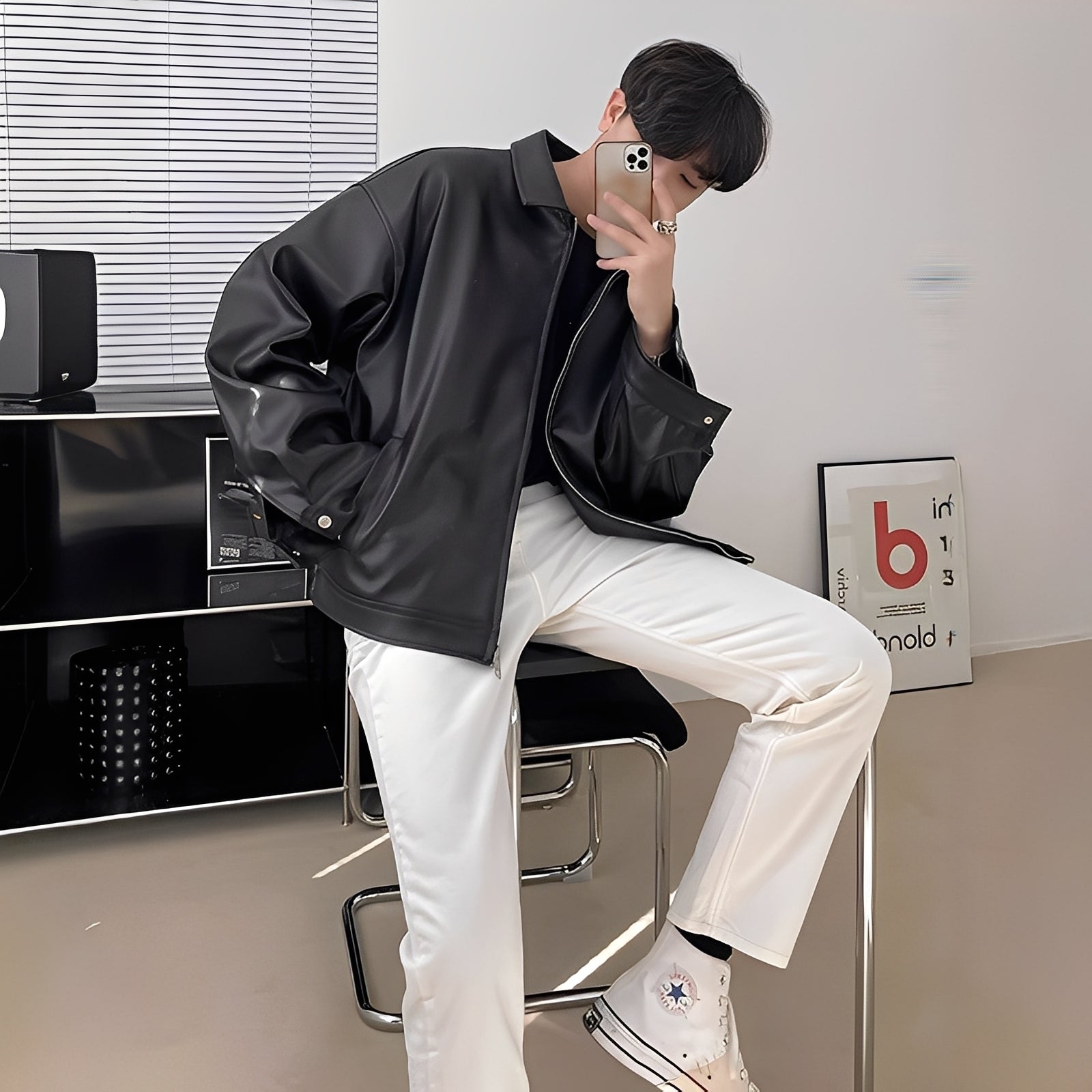 Geben Sie Ihrem Look einen markanten, reduzierten Akzent mit unserer Lohan Oversize-Leder-Bomberjacke für Herren – eine moderne Neuinterpretation eines klassischen Basics, perfekt für einen selbstbewussten Streetwear-Stil und einfaches Layering im Alltag. Die klaren Linien und die kastige Form dieser Jacke heben selbst die einfachsten Outfits hervor. Sie harmoniert ausgezeichnet mit T-Shirts, Hoodies oder Rollkragenpullovern und eignet sich ideal für entspannte Tage und abendliche Unternehmungen. Das glatte Außenleder und das angenehm gefütterte Innere bieten die perfekte Kombination aus Langlebigkeit und Komfort. Ob unterwegs oder bei einem Event, diese Jacke verleiht genau den richtigen Hauch von Stil und Selbstbewusstsein.