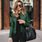 Erleben Sie unsere stilvolle Bikerjacke für Damen mit Reißverschluss namens Lysiane, die modernen Stil mit täglichem Komfort vereint. Gefertigt aus hochwertigen Materialien, bietet sie Langlebigkeit, Komfort und ein edles Finish, das zu jedem Outfit passt. Der Frontreißverschluss ermöglicht ein einfaches Anziehen, während der taillierte Schnitt Ihre Figur betont. Ideal für Freizeit, Abendveranstaltungen oder als Überwurf über Kleider und Oberteile ist diese Jacke ein Muss für modebewusste Frauen.