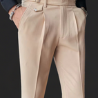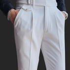 Diese Hosen vereinen britische Schneiderkunst mit einem modernen Stil. Sie bestehen aus einem leichten, atmungsaktiven Stoff, ideal für den Frühling und Sommer. Das gefaltete Vorderteil und der anpassbare Bund geben ihnen eine auffällige Passform, während der lockere obere Teil und das schmal zulaufende Bein Stil und Komfort bieten. Egal ob mit Hemd oder T-Shirt – sie ergänzen jeden Look mit lässiger Eleganz.