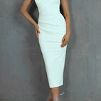 Zeigen Sie Stil mit diesem beeindruckenden schulterfreien Midi-Party-Kleid. Bestellen Sie jetzt, um die ideale Kombination aus Mode und Eleganz zu erfahren!