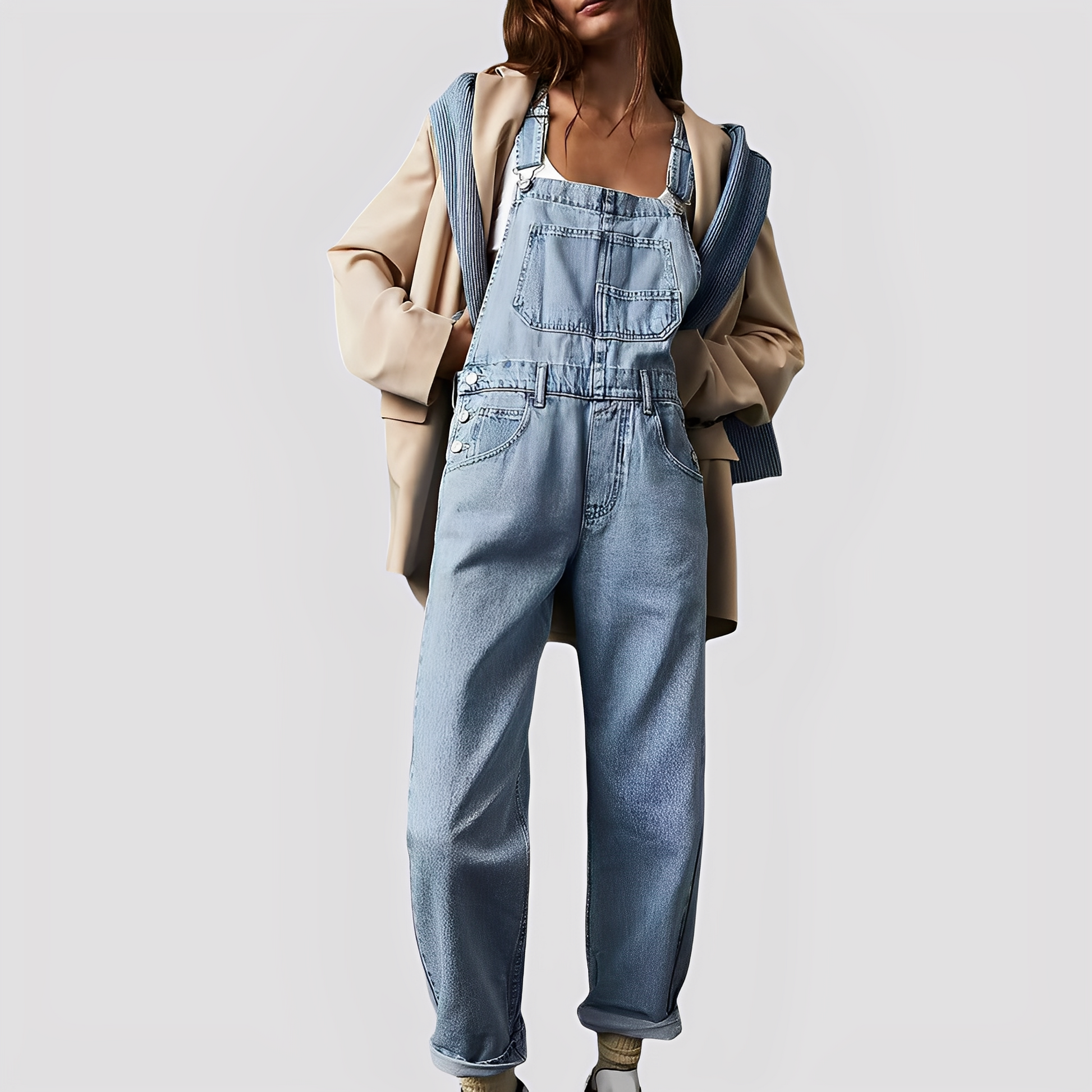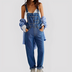 Die Mildred Jeans-Latzhose überzeugt mit ihrem lockeren Schnitt und dem hochwertigen Jeansstoff, der sowohl bequem als auch robust ist. Sie hat praktische Taschen und verstellbare Träger für Flexibilität und Funktionalität. Ihr lockerer, freier Stil ist perfekt für Freizeit, Ausflüge oder entspannte Tage.