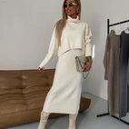 Zweitesiliges Strickkleid-Set mit Rollkragen und langer Form