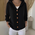 Der Orianne-Cardigan mit langen Ärmeln ist leicht, bequem und stilvoll und gehört in jede Garderobe. Aus atmungsaktivem Polyester mit der richtigen Elastizität gefertigt, bietet er einen fließenden und gemütlichen Schnitt, perfekt für den Alltag. Die lockere A-Linie fällt schön, ohne wuchtig zu wirken, und die Kapuze verleiht ihm einen modernen, lässigen Touch. Ideal für frische Frühlingsmorgen oder kühle Herbstabende ist Orianne Ihr unverzichtbares Teil für Übergangszeiten.