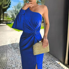 Das Pauline One-Shoulder Kleid beeindruckt mit seinem asymmetrischen Design und den edlen Drapierungen. Aus hochwertigem Stoff gefertigt, passt es sich elegant der Figur an und hebt die feminine Ausstrahlung hervor. Die Mischung aus klassischer Eleganz und moderner Raffinesse macht dieses Kleid zur idealen Wahl für Feiern, Partys oder stilvolle Abende. Ein Kleid, das Selbstbewusstsein und Stil zeigt.