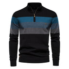 Der Ralph-Pullover besticht durch sein markantes Streifenmuster und einen komfortablen Materialmix. Der verdeckte Reißverschluss am Kragen ermöglicht eine individuelle Belüftung und erhöht den Komfort bei unbeständigem Wetter. Dank seiner angenehmen Wärme ist der Pullover perfekt für den Alltag – egal ob beim Spaziergang, im Büro oder in der Freizeit. Ein stilvolles Kleidungsstück, das Design und Funktionalität miteinander verbindet.