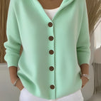 Ryanne - Bequeme Langarm-Kapuzen-Strickjacke für Damen
