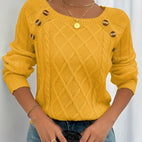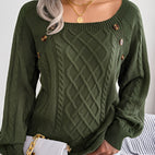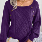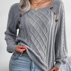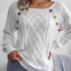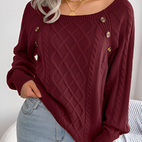 Dieser Pullover aus Strick überzeugt mit seinem bequemen Material und den auffälligen Knöpfen, die Ihrem Look eine besondere Note geben. Der lässige Schnitt bietet Bewegungsfreiheit und hohen Tragekomfort den ganzen Tag. Ideal für kühlere Tage, ob zu Hause, im Büro oder in der Freizeit. Ein Kleidungsstück, das Gemütlichkeit und stilvolles Design vereint.