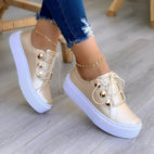 Die Samara Damen-Sneaker haben ein schickes Design mit farbenfrohen Details, die jedem Outfit einen frischen Touch geben. Sie sind aus hochwertigem Leder gefertigt, was sie langlebig und sehr komfortabel macht. Ihr modernes Design macht sie zu einem vielseitigen Begleiter – perfekt sowohl für den täglichen Gebrauch als auch für besondere Anlässe. Diese Sneakers bieten einen modischen Stil, ohne Kompromisse beim Komfort einzugehen.