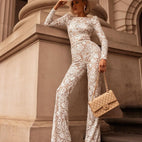 Strahlende Eleganz! Der Damen-Overall - Spitze mit Pailletten - Lange Ärmel - Rundhals - Enges Modell ist perfekt für einen Abend.