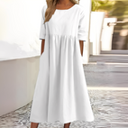 Ein unverzichtbares Baumwollkleid, das im Alltag Komfort, Stil und Vielseitigkeit vereint.
