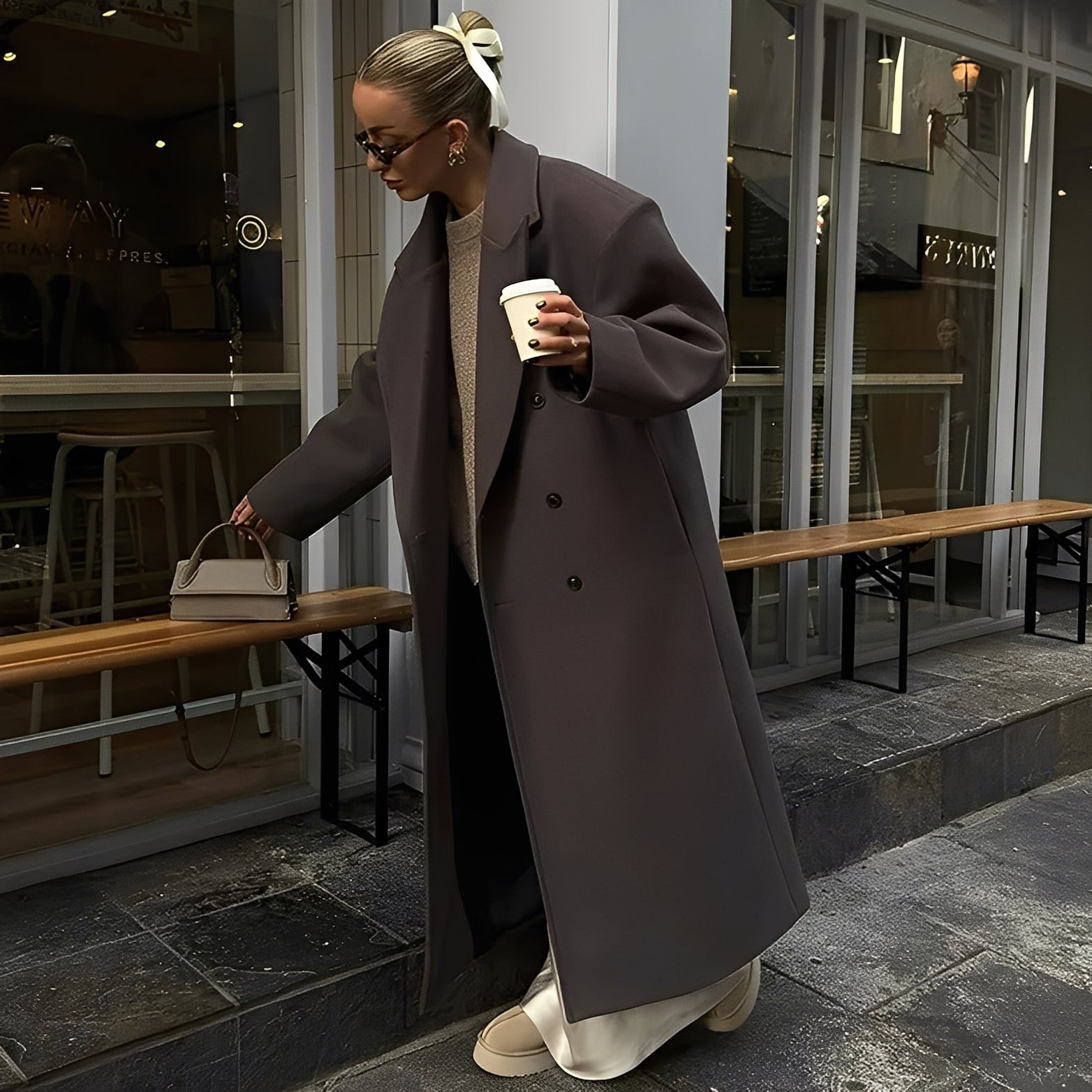 Veronica - Stilvoller, langer Damenmantel mit lockerer Schnittform