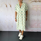 Tragen Sie das entspannte Xandra-Kleid, das für natürlichen Stil und durchgehenden Komfort gemacht ist. Hergestellt aus leichtem, atmungsaktiven Material, sorgt es für angenehme Kühle und bietet einen lässigen, schmeichelhaften Schnitt. Der schicke Print, der elegante Reverskragen und die vielseitigen kurzen Ärmel machen es ideal für zwanglose Ausflüge, Brunchs oder stilvolle Wochenendveranstaltungen. Ein dezenter Seitenschlitz bringt Bewegung und einen Hauch von Eleganz, was es sowohl praktisch als auch trendy macht.